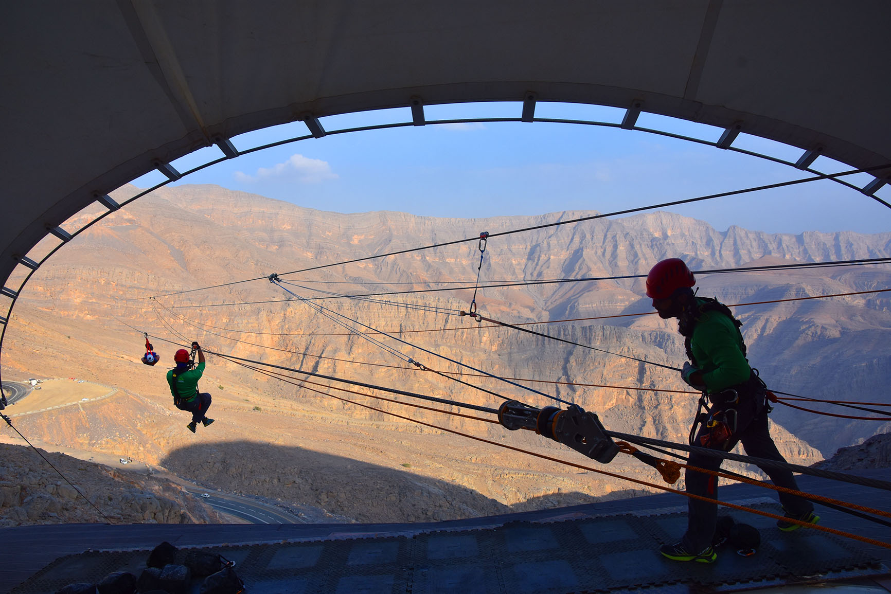 Ras Al Khaimah, UAE Oct–Apr Jebel Jais Flight, mountain climbing, via ferrata, desert safaris, sandboarding, Bedouin-style camping Windproof layers, gloves, helmet, climbing shoes, closed-toe shoes Use certified guides for zipline/climbing; stay hydrated; sun protection